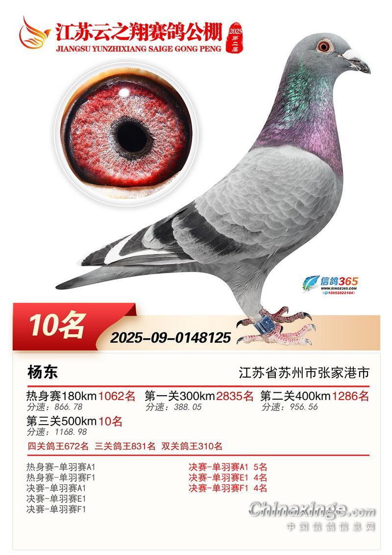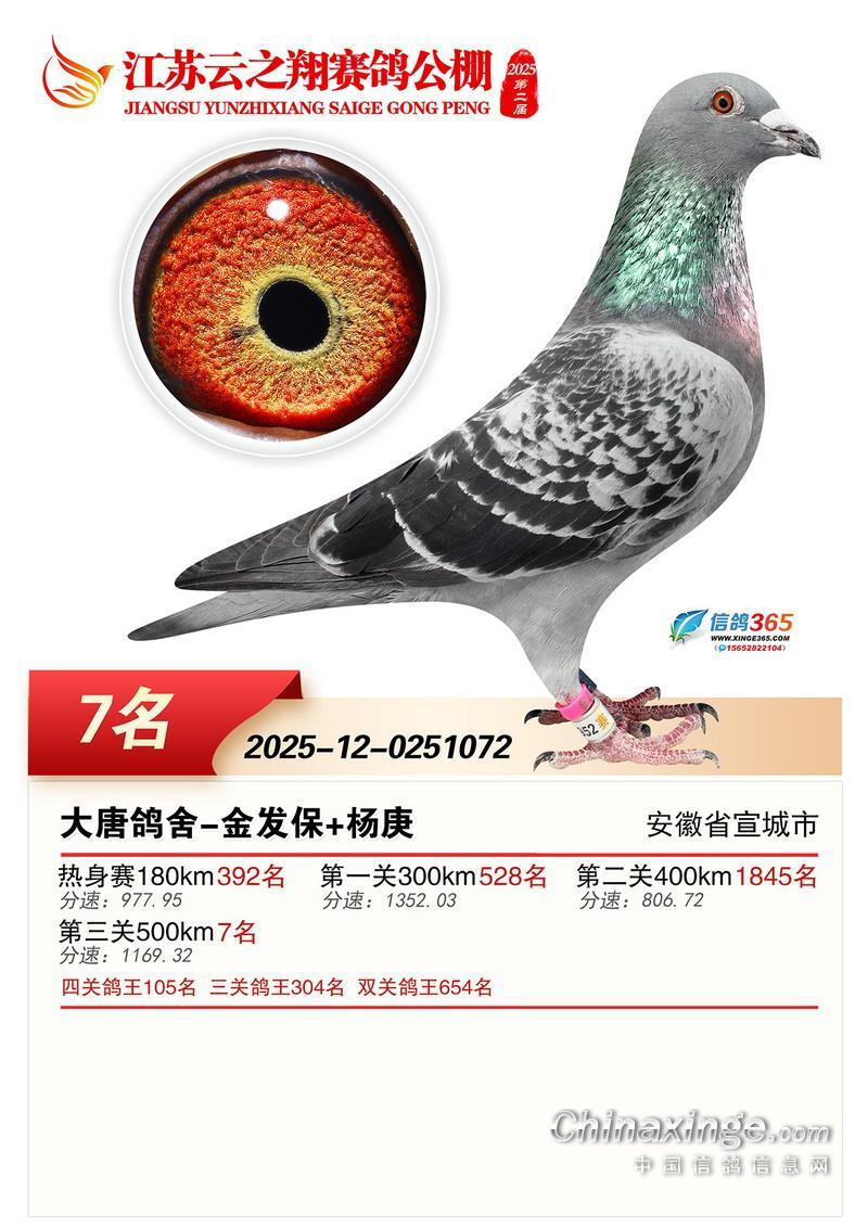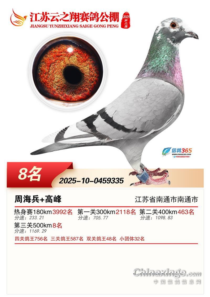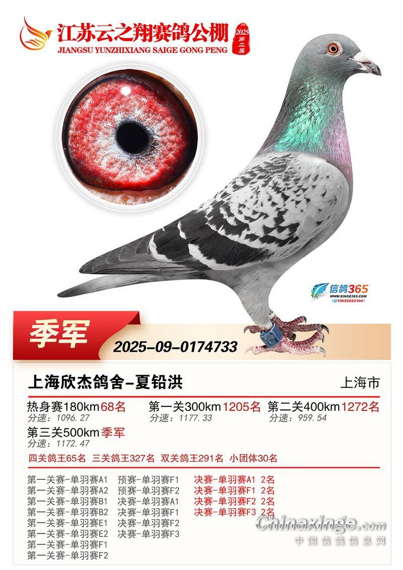 砥砺前行,不负鸽友期许。江苏云之翔赛鸽公棚2025年第二届秋季竞赛已圆满落下帷幕。作为稳步成长的实力公棚,云之翔公棚本届秋赛以公平公正公开为核心,凭借近1.3万羽的收鸽规模、平原黄金赛道的独特优势,从收费站到三关决赛,全程层层筛选、步步淬炼,最终1681羽精英赛鸽顺利归巢。鸽友速翔赛鸽-庄伟兵麾下雨点鸽11-0436046力压群雄,从一关排名两千开外到决赛逆袭夺冠,是一羽不可多得的实力黑马;苏州鸽友邹建华的灰鸽10-0137247,以稳扎稳打的表现加冕三关鸽王冠军。双鸽闪耀,实力印证赛道传奇。近日,2026年云之翔公棚第三届秋季竞赛规程已发布(点此查看规程),26年预交一羽保证金赠送特比环5枚!多交多得!欢迎各位鸽友来参赛。(点此进入会员预定)