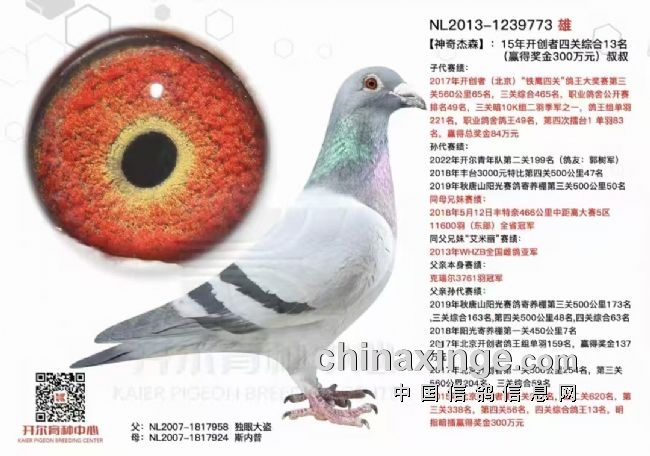 (1)与开尔种鸽结缘:李琛崇仰开尔,开尔种鸽的“世界一流”;崇敬邢伟的人格魅力,他是中国鸽界的“楷模”。李琛还深知:中国开尔,秉承着“世界顶级铭血”的理念,每年都投入巨资引进顶级铭种,以创中国的实战鸽系,比如:“阿曼多”“薪金姆”“仟翼”“新伟大号”“爱丽丝”等,举不胜举。