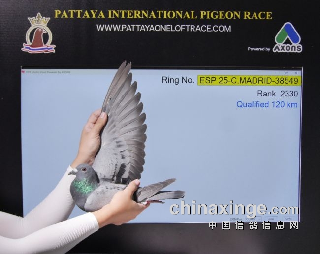 紧接着17时12分,西班牙昂德沃尔德战队(TEAMUNDERWORLD)的一羽ESP25-C.MADRID-38549报进,分速1039.2500米/分,获得亚军。