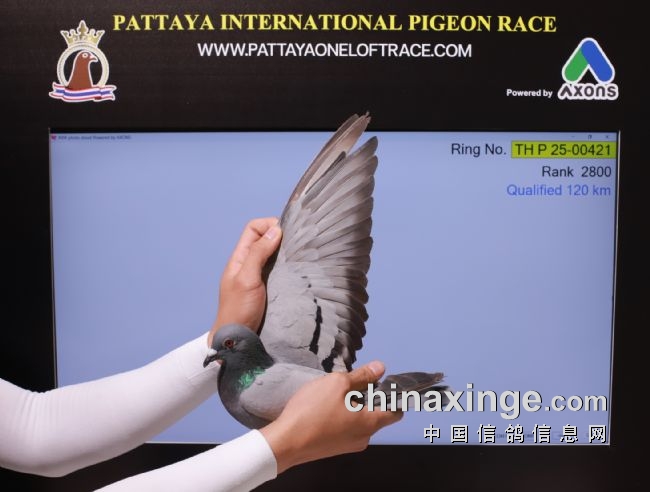 17时20分,泰国本地鸽友占猜・潘哈西普(CHANCHAIPEANHASILP)麾下一羽THP25-00421归来,获得季军,分速1024.4500米/分。