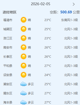 2月5日7点5分,广东海翔春棚决赛在福建省福清市开笼,集鸽2073羽,参考空距500公里。天气预报显示,从司放地至诏安均为晴天,进入潮安至归巢地为阴天。总体上,一路吹北风,风力大小为1-3级。