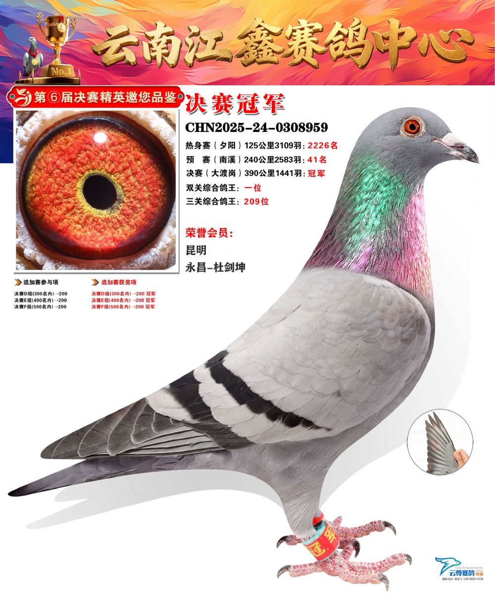 5、云南省宣威市银集赛鸽中心四关鸽王冠军